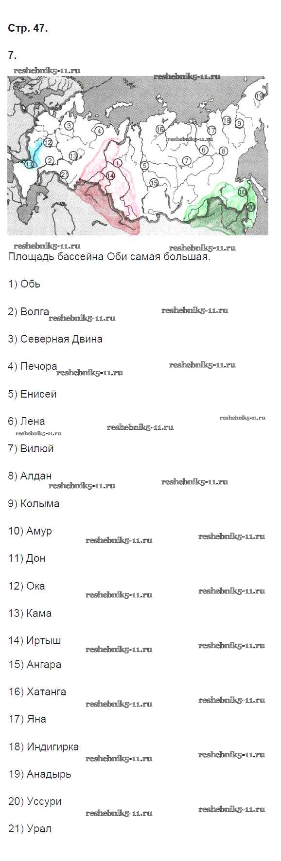 Готовая домашняя работа с ответами по Географии за 8 класс Ким, Марченко, Низовцев Рабочая тетрадь УМК Дрофа 2016 ФГОС - Страницы 47