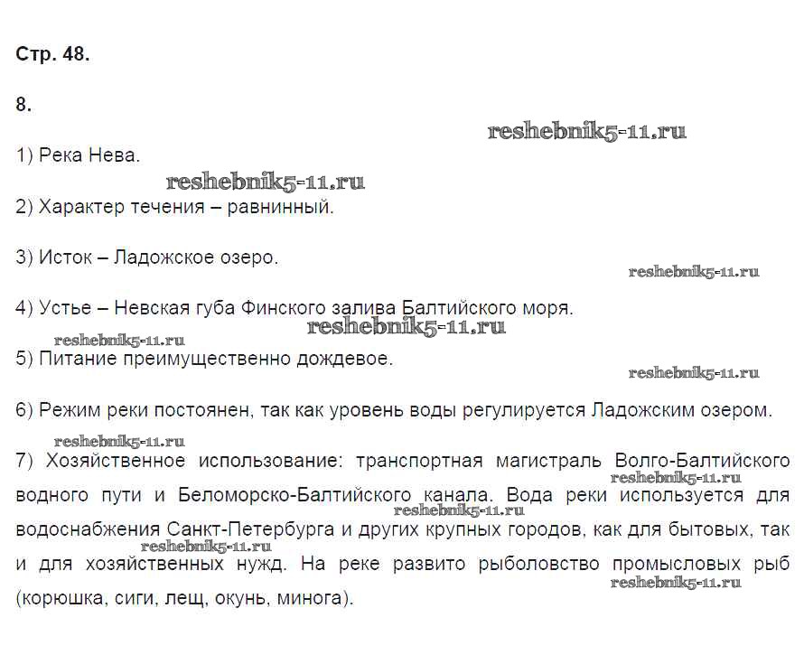 Готовая домашняя работа с ответами по Географии за 8 класс Ким, Марченко, Низовцев Рабочая тетрадь УМК Дрофа 2016 ФГОС - Страницы 48