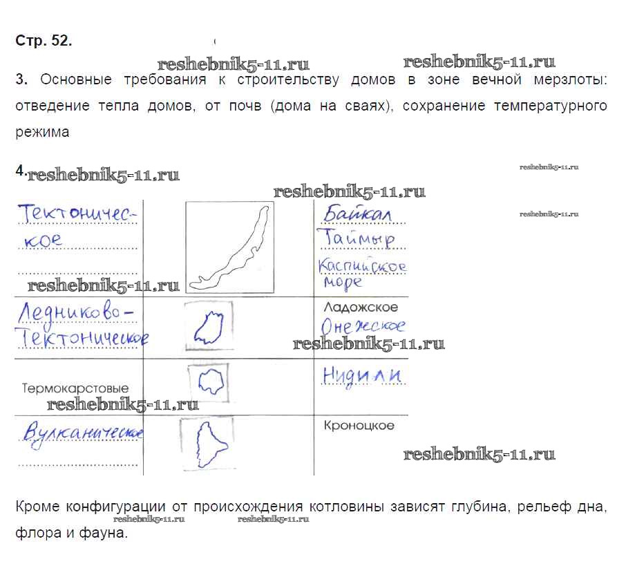 Готовая домашняя работа с ответами по Географии за 8 класс Ким, Марченко, Низовцев Рабочая тетрадь УМК Дрофа 2016 ФГОС - Страницы 52