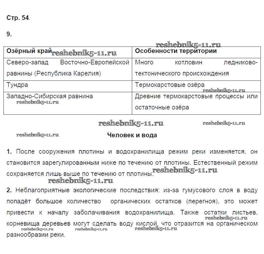 Готовая домашняя работа с ответами по Географии за 8 класс Ким, Марченко, Низовцев Рабочая тетрадь УМК Дрофа 2016 ФГОС - Страницы 54