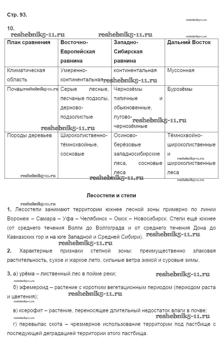 Готовая домашняя работа с ответами по Географии за 8 класс Ким, Марченко, Низовцев Рабочая тетрадь УМК Дрофа 2016 ФГОС - Страницы 93