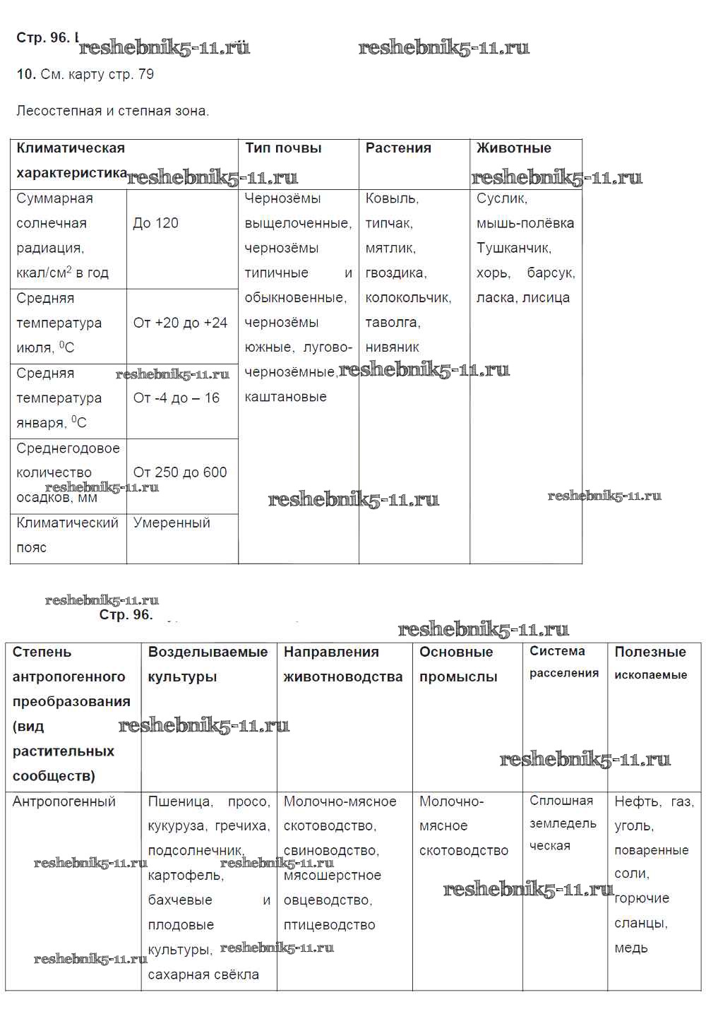 Готовая домашняя работа с ответами по Географии за 8 класс Ким, Марченко, Низовцев Рабочая тетрадь УМК Дрофа 2016 ФГОС - Страницы 96