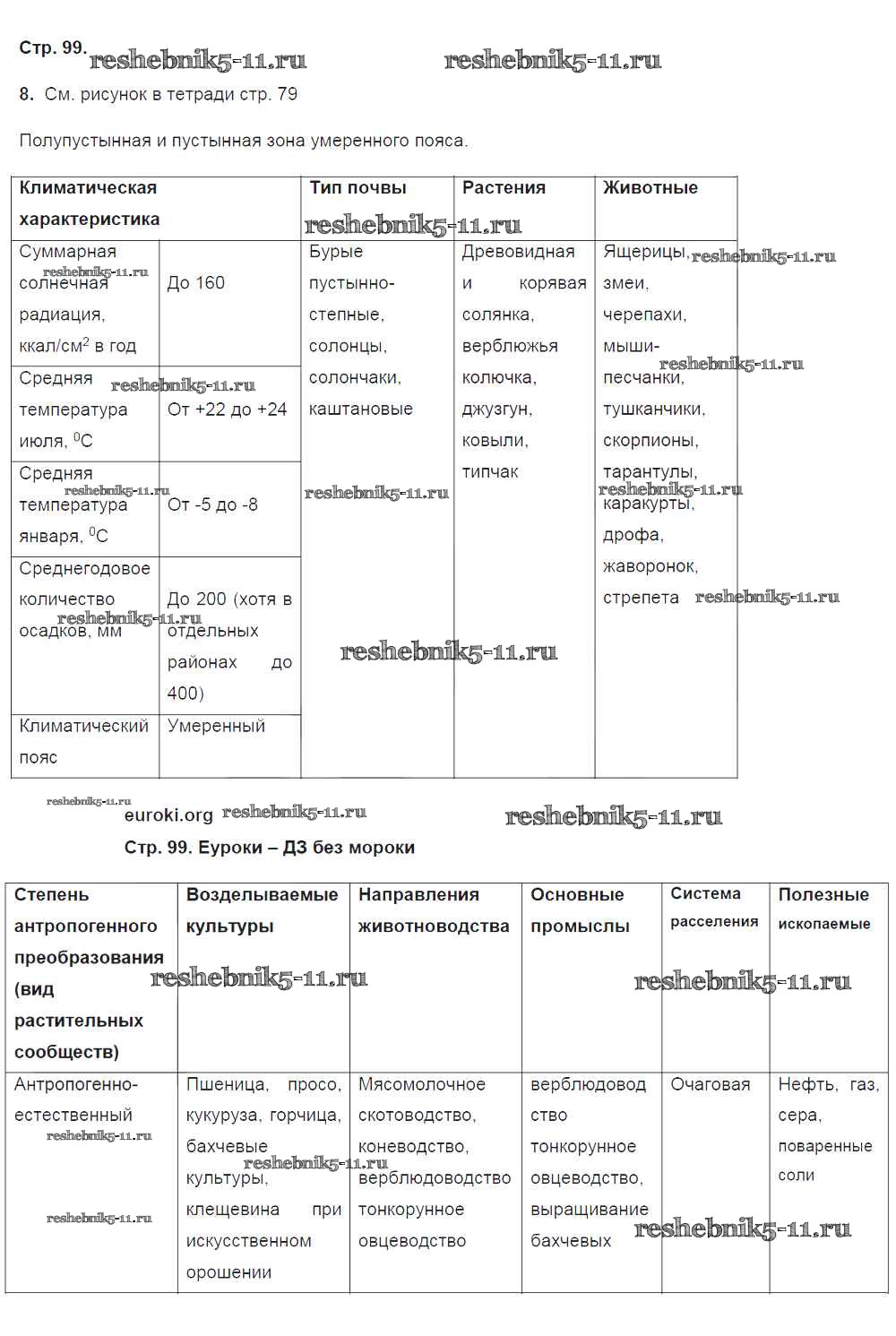 Готовая домашняя работа с ответами по Географии за 8 класс Ким, Марченко, Низовцев Рабочая тетрадь УМК Дрофа 2016 ФГОС - Страницы 99