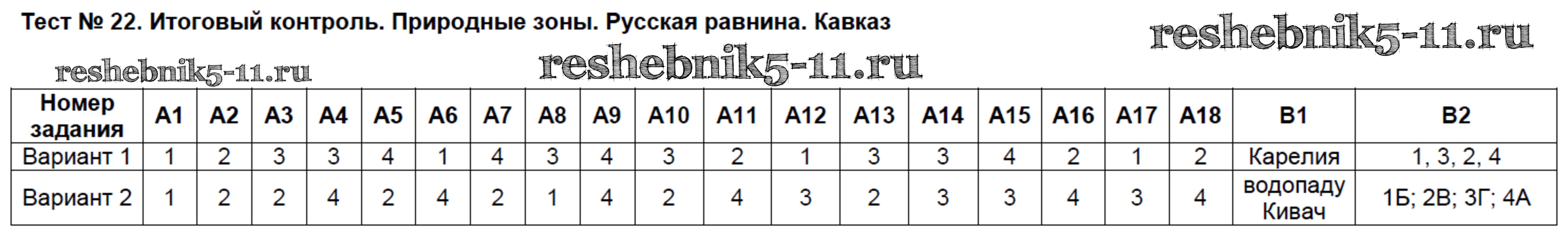 Готовая домашняя работа с ответами по Географии за 8 класс Жижина Контрольно-измерительные материалы (КИМ) ВАКО 2018 ФГОС - Тесты 22