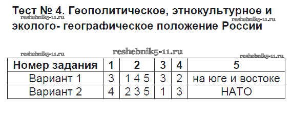 Готовая домашняя работа с ответами по Географии за 8 класс Пятунина Тесты УМК Экзамен 2017 ФГОС - Тесты 4