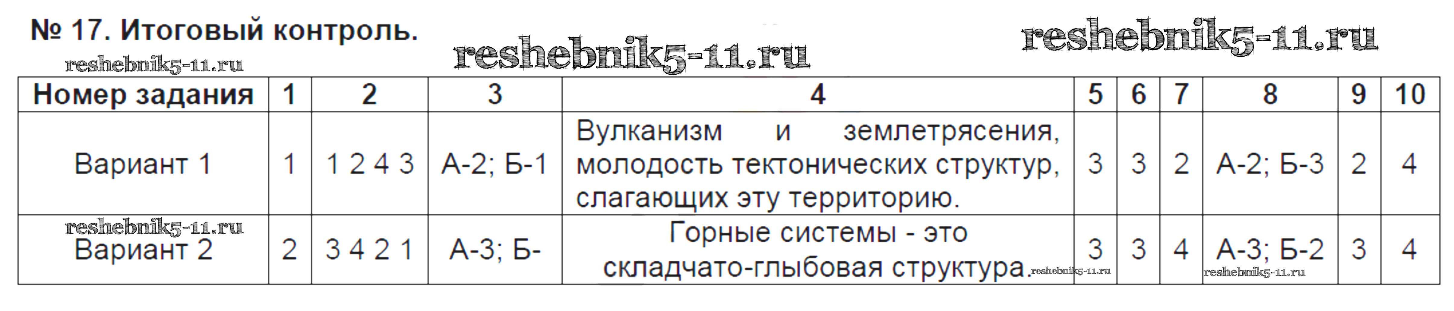 Готовая домашняя работа с ответами по Географии за 8 класс Пятунина Тесты УМК Экзамен 2017 ФГОС - Итоговый контроль 17