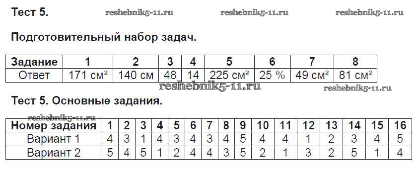 Готовая домашняя работа с ответами по Геометрии за 8 класс Звавич, Потоскуев Тесты УМК Экзамен 2013 ФГОС - Тесты Тест №5