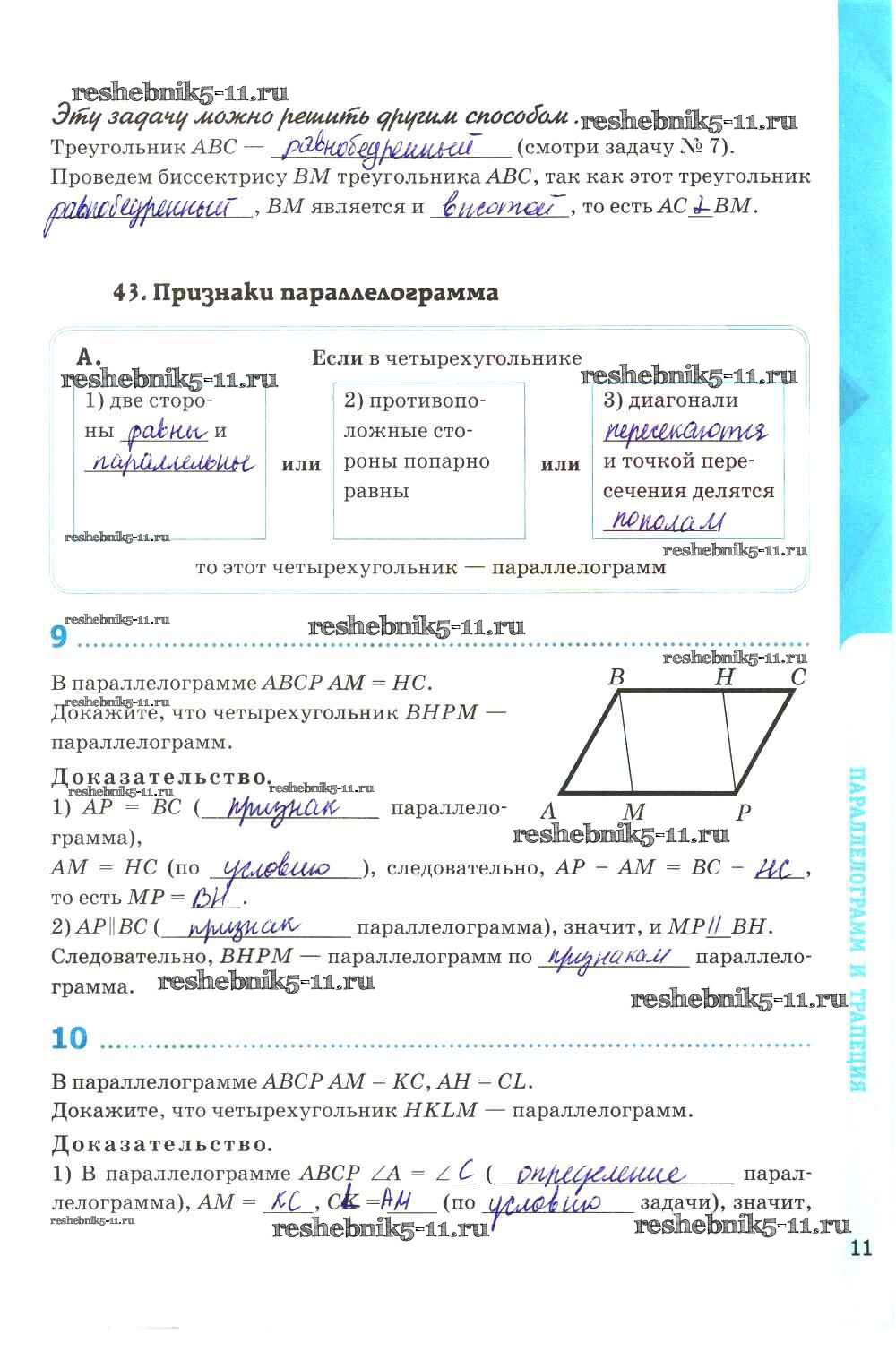 Готовая домашняя работа с ответами по Геометрии за 8 класс Глазков, Камаев Рабочая тетрадь УМК Экзамен 2017 ФГОС - Глава V. Четырехугольники стр. 11