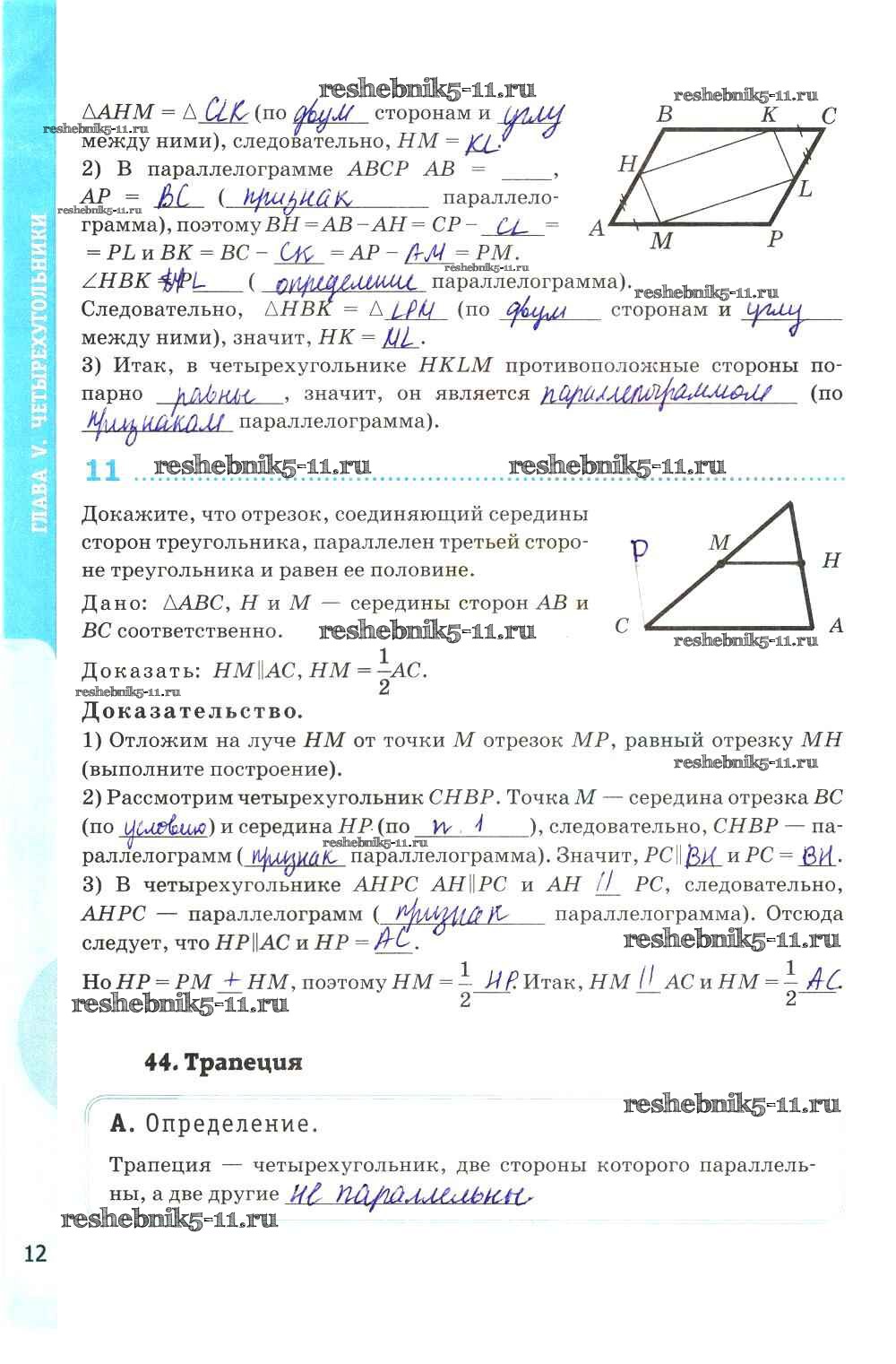 Готовая домашняя работа с ответами по Геометрии за 8 класс Глазков, Камаев Рабочая тетрадь УМК Экзамен 2017 ФГОС - Глава V. Четырехугольники стр. 12