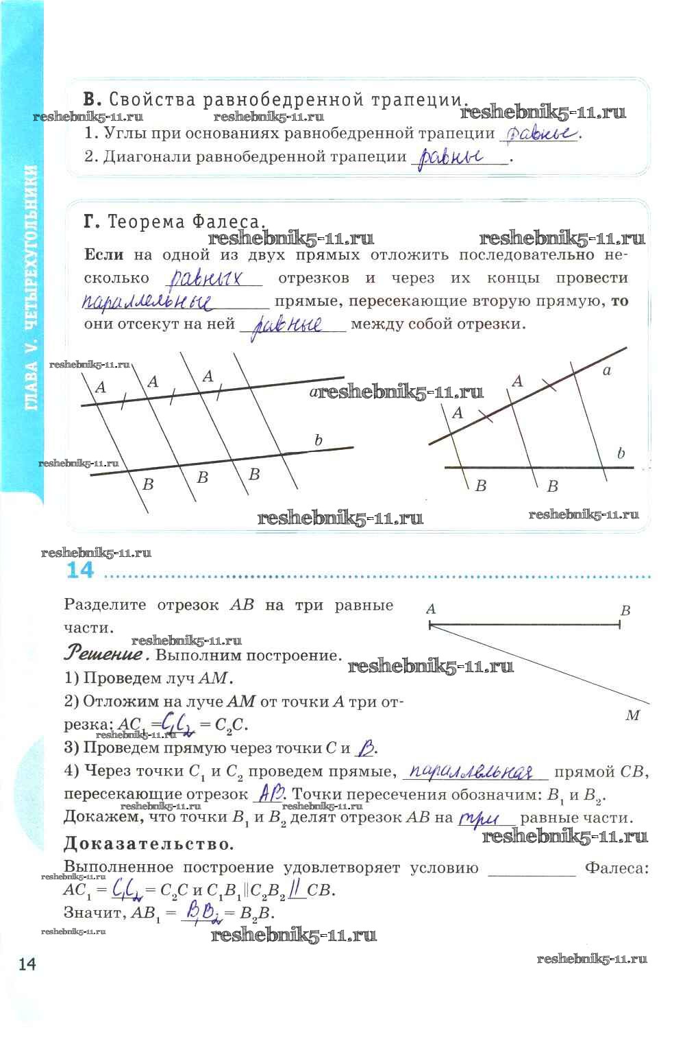 Геометрия за 8 класс Глазков Рабочая тетрадь УМК Экзамен глава V стр. 14