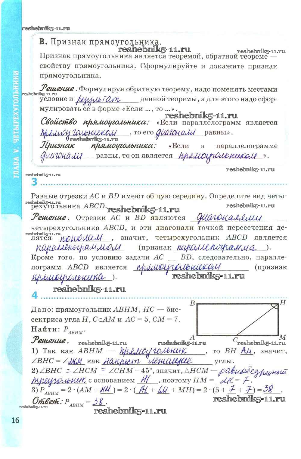 Готовая домашняя работа с ответами по Геометрии за 8 класс Глазков, Камаев Рабочая тетрадь УМК Экзамен 2017 ФГОС - Глава V. Четырехугольники стр. 16