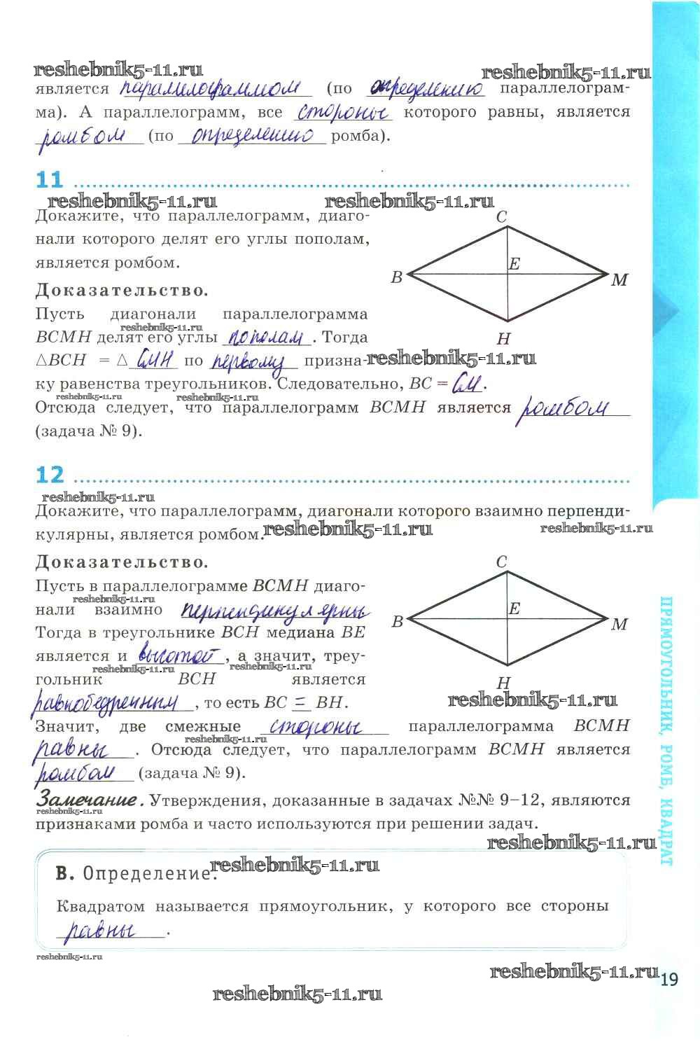 Готовая домашняя работа с ответами по Геометрии за 8 класс Глазков, Камаев Рабочая тетрадь УМК Экзамен 2017 ФГОС - Глава V. Четырехугольники стр. 19