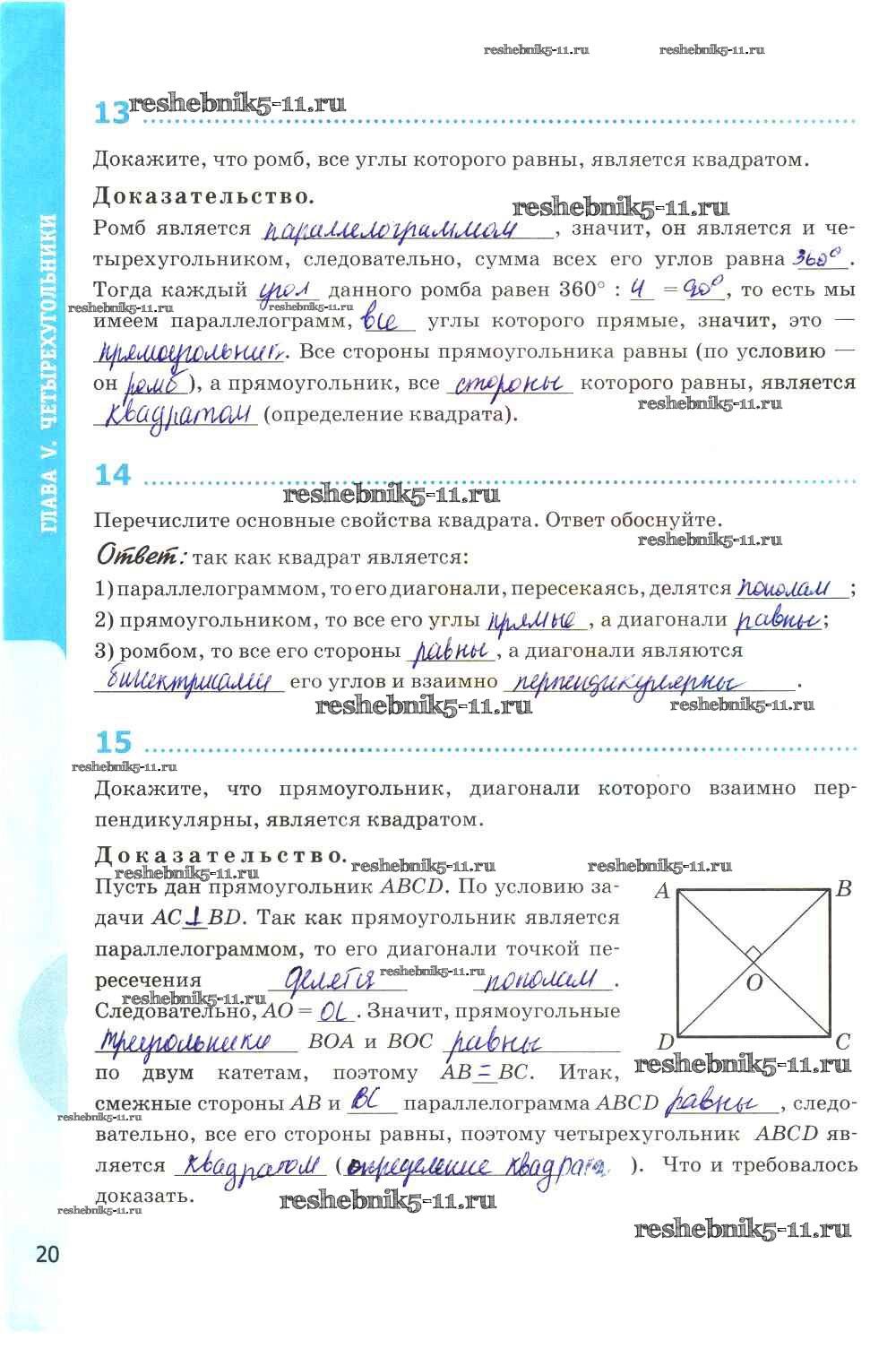 Готовая домашняя работа с ответами по Геометрии за 8 класс Глазков, Камаев Рабочая тетрадь УМК Экзамен 2017 ФГОС - Глава V. Четырехугольники стр. 20
