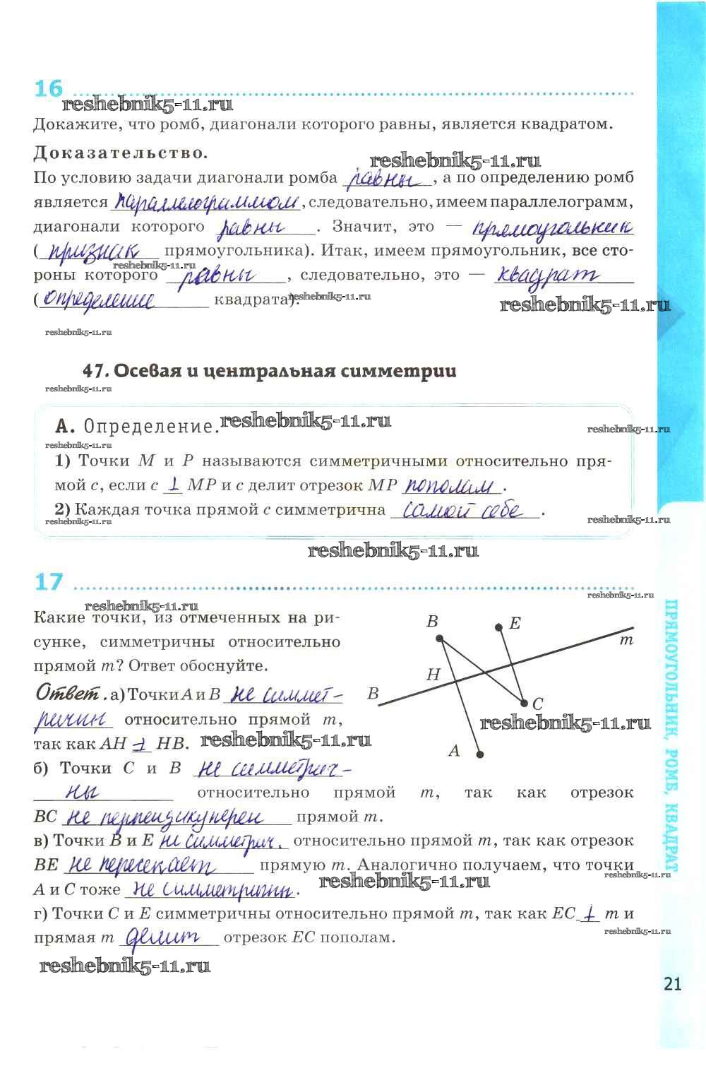 Готовая домашняя работа с ответами по Геометрии за 8 класс Глазков, Камаев Рабочая тетрадь УМК Экзамен 2017 ФГОС - Глава V. Четырехугольники стр. 21