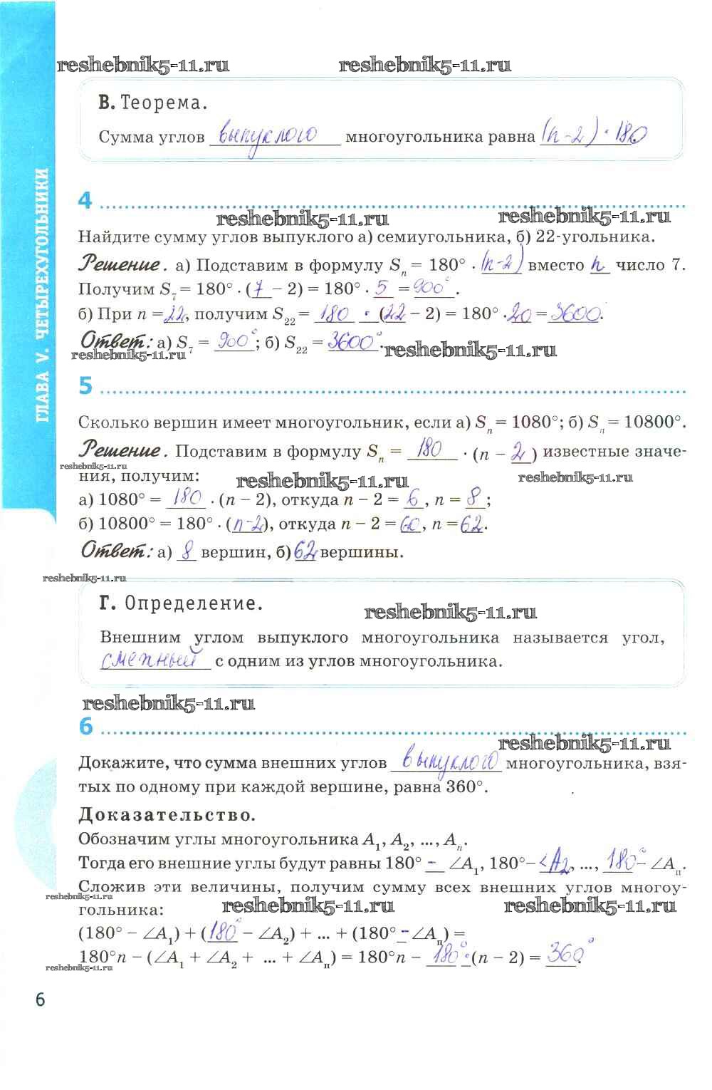 Геометрия за 8 класс Глазков Рабочая тетрадь УМК Экзамен глава V стр. 6