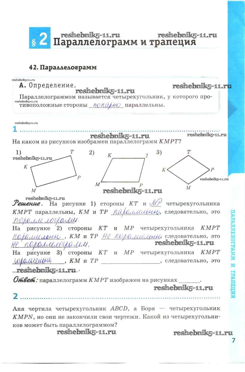 Готовая домашняя работа с ответами по Геометрии за 8 класс Глазков, Камаев Рабочая тетрадь УМК Экзамен 2017 ФГОС - Глава V. Четырехугольники стр. 7