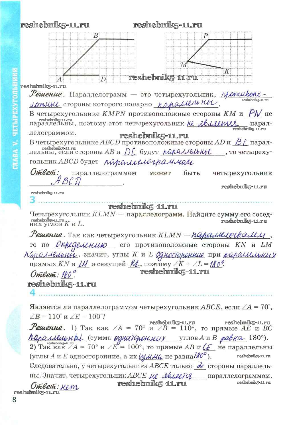 Готовая домашняя работа с ответами по Геометрии за 8 класс Глазков, Камаев Рабочая тетрадь УМК Экзамен 2017 ФГОС - Глава V. Четырехугольники стр. 8