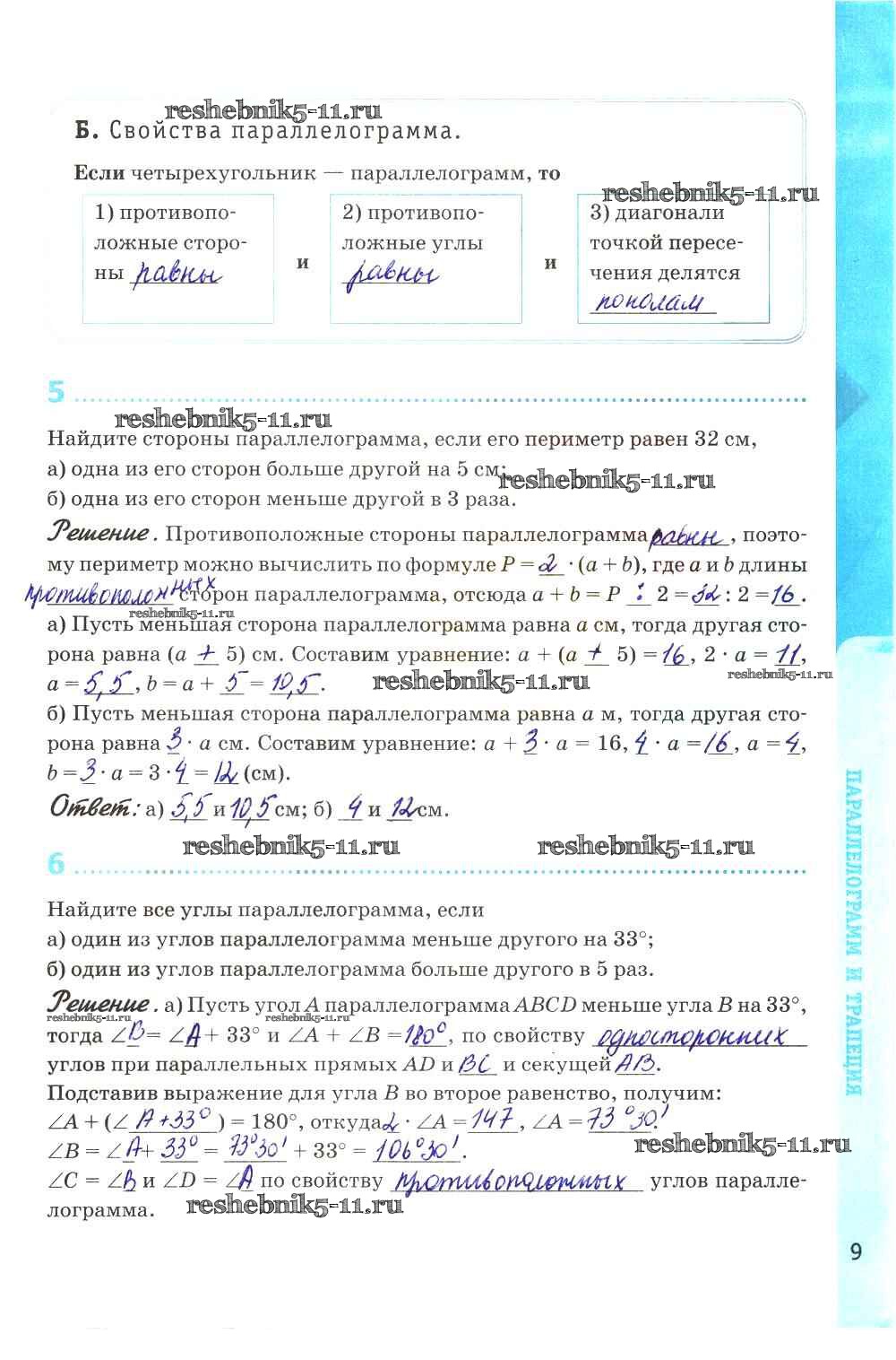 Готовая домашняя работа с ответами по Геометрии за 8 класс Глазков, Камаев Рабочая тетрадь УМК Экзамен 2017 ФГОС - Глава V. Четырехугольники стр. 9