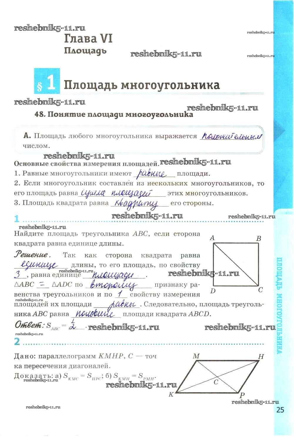 Готовая домашняя работа с ответами по Геометрии за 8 класс Глазков, Камаев Рабочая тетрадь УМК Экзамен 2017 ФГОС - Глава VI. Площадь стр. 25