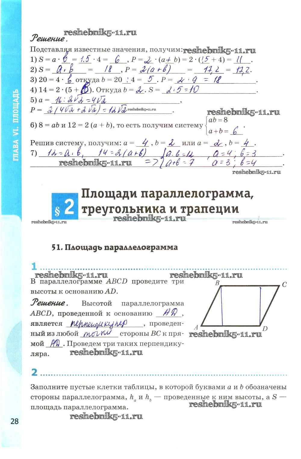 Готовая домашняя работа с ответами по Геометрии за 8 класс Глазков, Камаев Рабочая тетрадь УМК Экзамен 2017 ФГОС - Глава VI. Площадь стр. 28