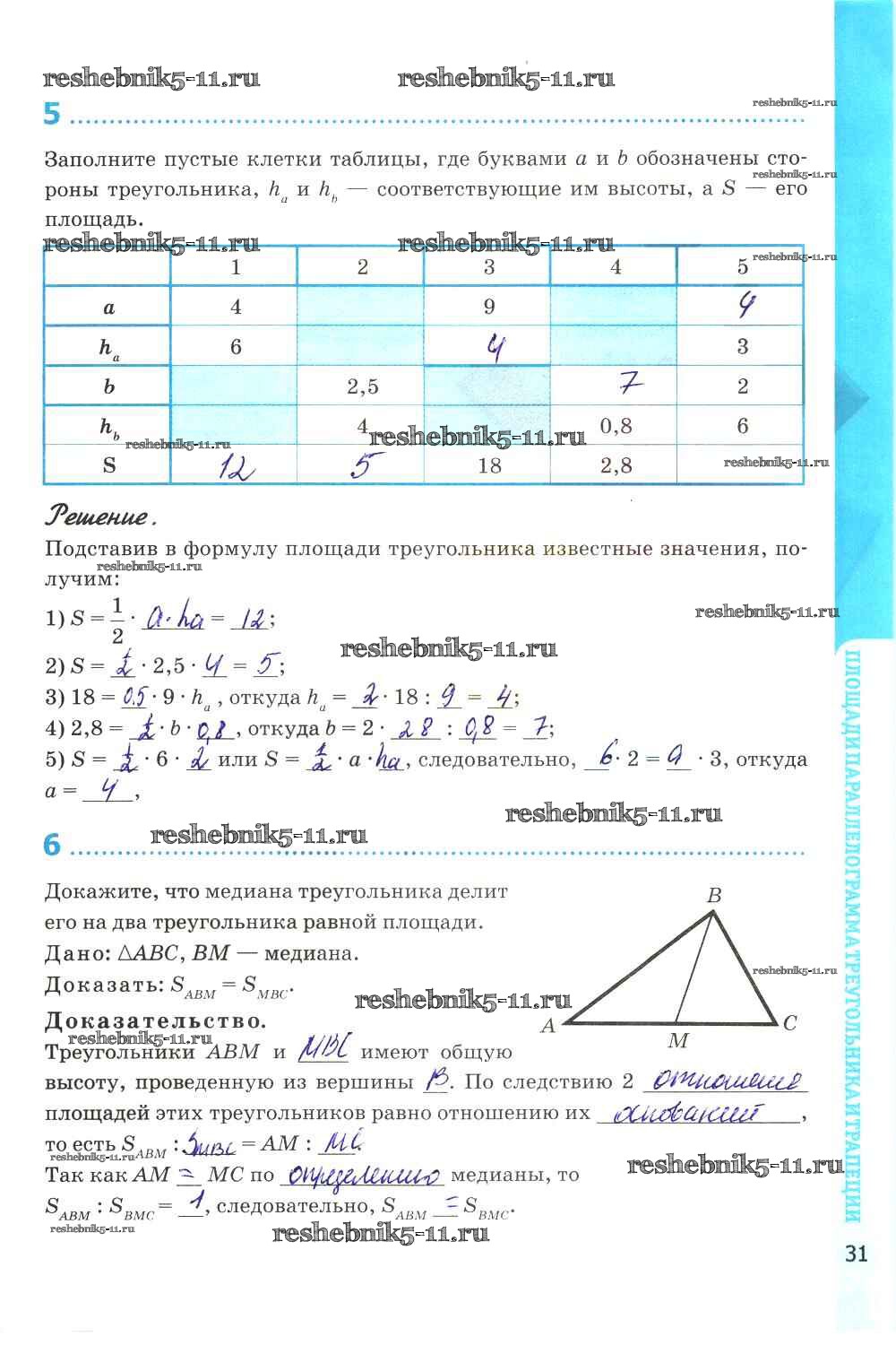 Готовая домашняя работа с ответами по Геометрии за 8 класс Глазков, Камаев Рабочая тетрадь УМК Экзамен 2017 ФГОС - Глава VI. Площадь стр. 31