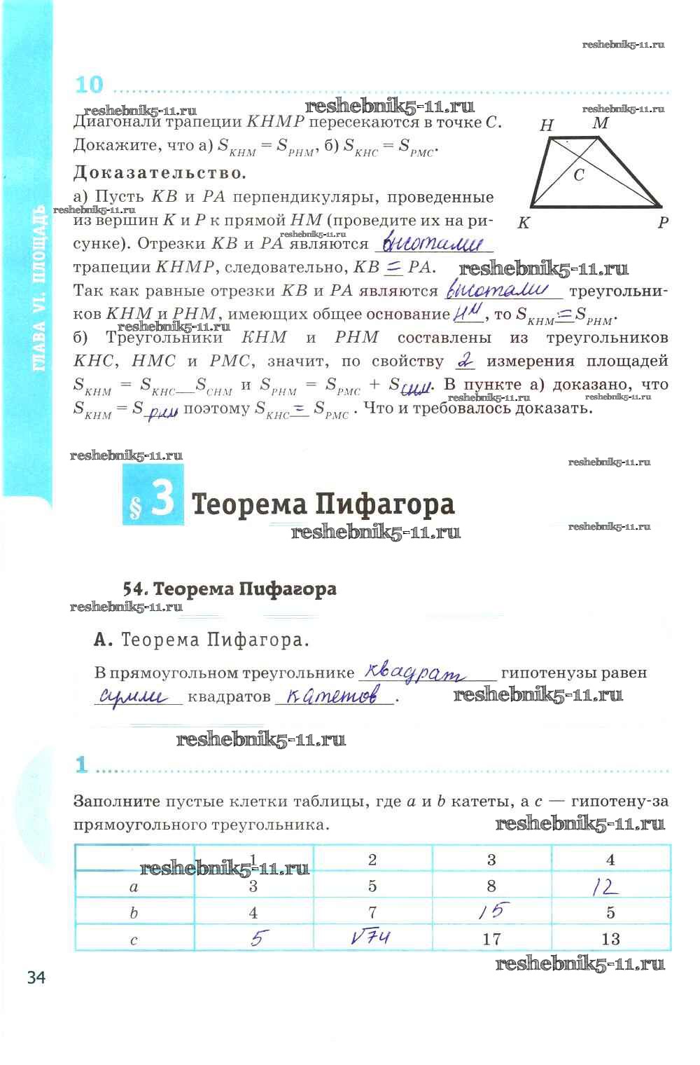 Готовая домашняя работа с ответами по Геометрии за 8 класс Глазков, Камаев Рабочая тетрадь УМК Экзамен 2017 ФГОС - Глава VI. Площадь стр. 34
