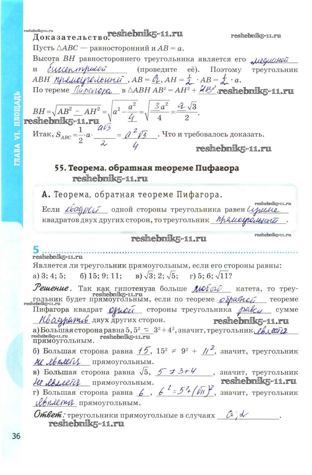 Геометрия за 8 класс Глазков Рабочая тетрадь УМК Экзамен глава VI стр. 36