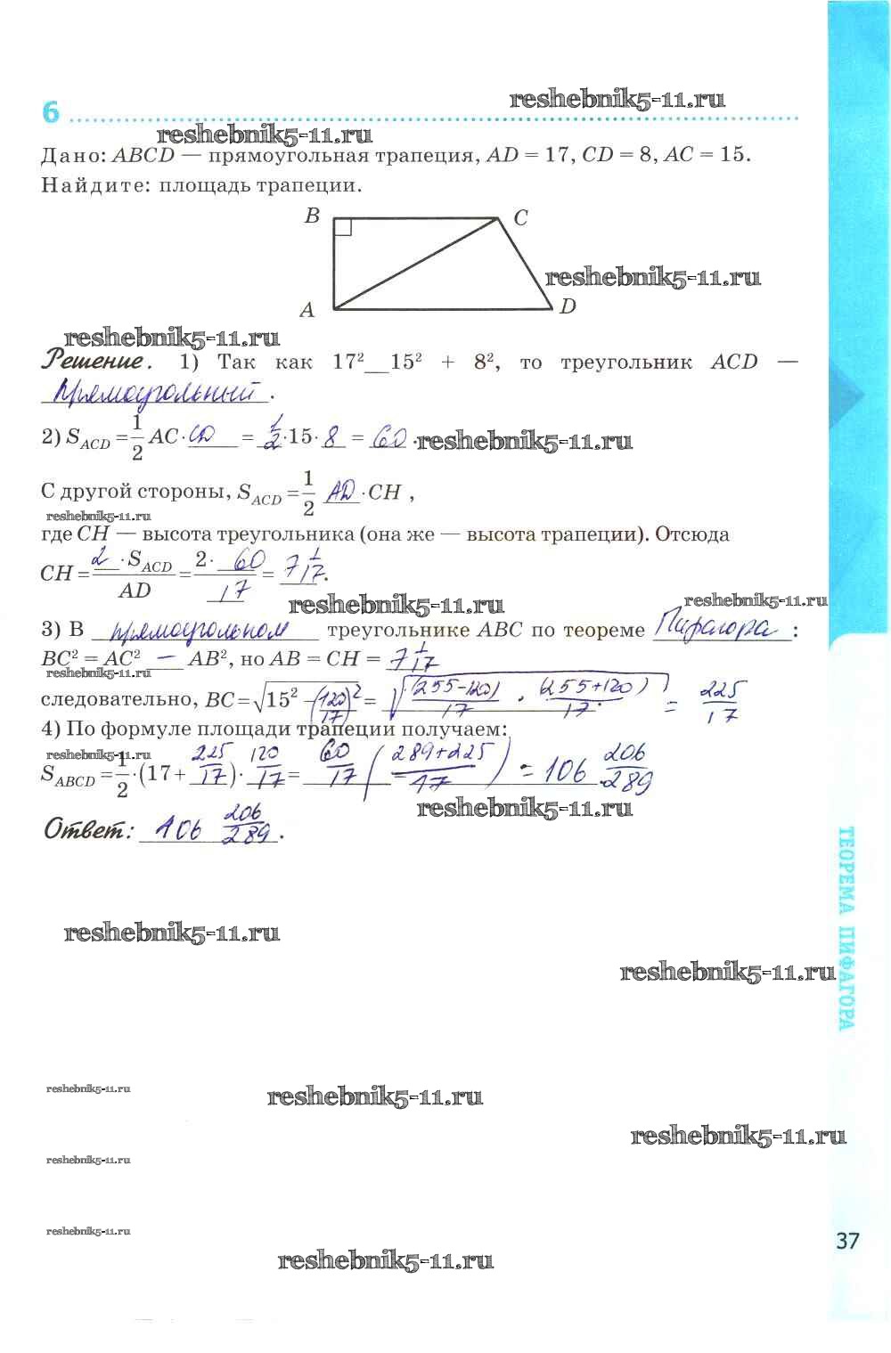 Геометрия за 8 класс Глазков Рабочая тетрадь УМК Экзамен глава VI стр. 37