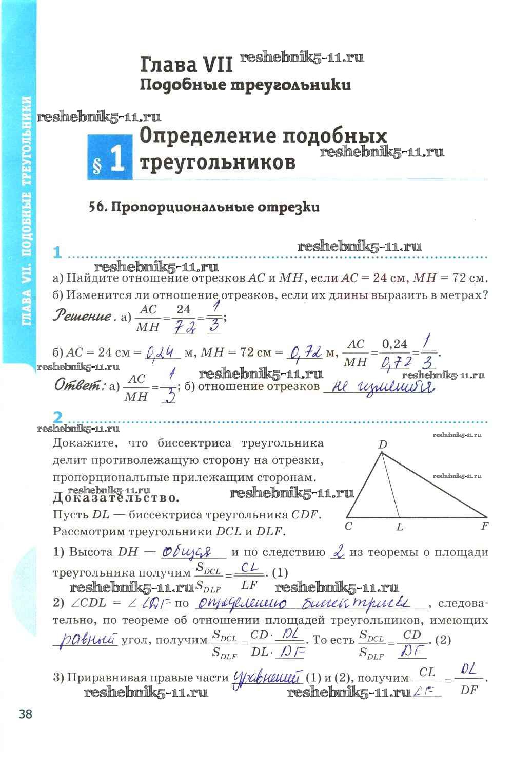 Готовая домашняя работа с ответами по Геометрии за 8 класс Глазков, Камаев Рабочая тетрадь УМК Экзамен 2017 ФГОС - Глава VII. Подобные треугольники стр. 38