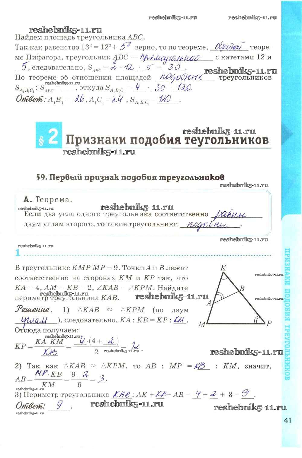 Готовая домашняя работа с ответами по Геометрии за 8 класс Глазков, Камаев Рабочая тетрадь УМК Экзамен 2017 ФГОС - Глава VII. Подобные треугольники стр. 41