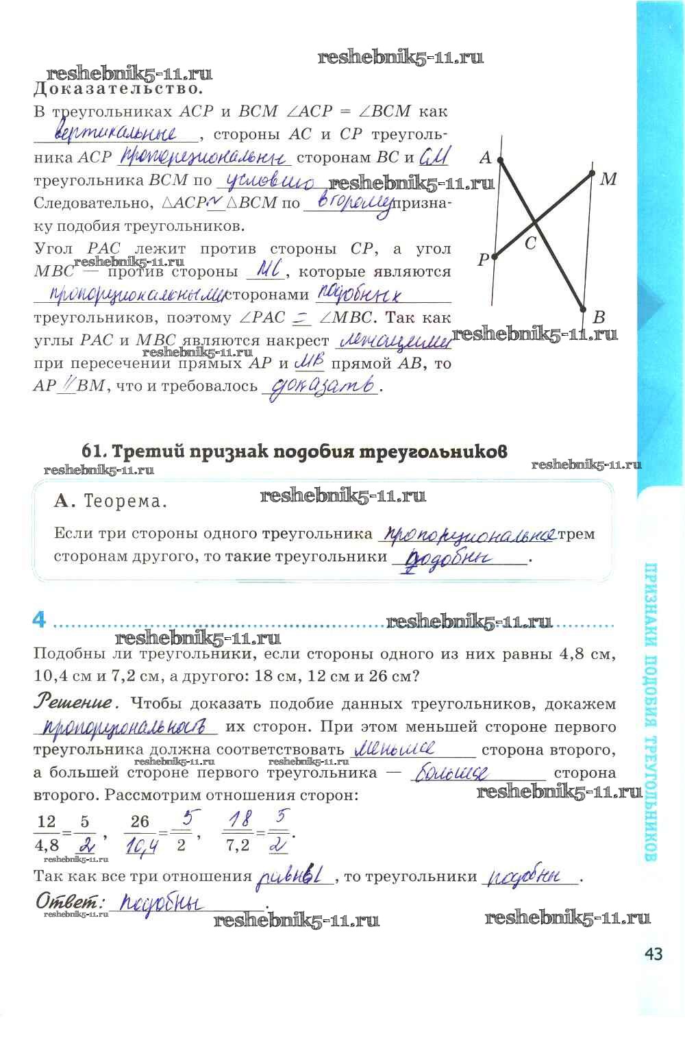 Готовая домашняя работа с ответами по Геометрии за 8 класс Глазков, Камаев Рабочая тетрадь УМК Экзамен 2017 ФГОС - Глава VII. Подобные треугольники стр. 43