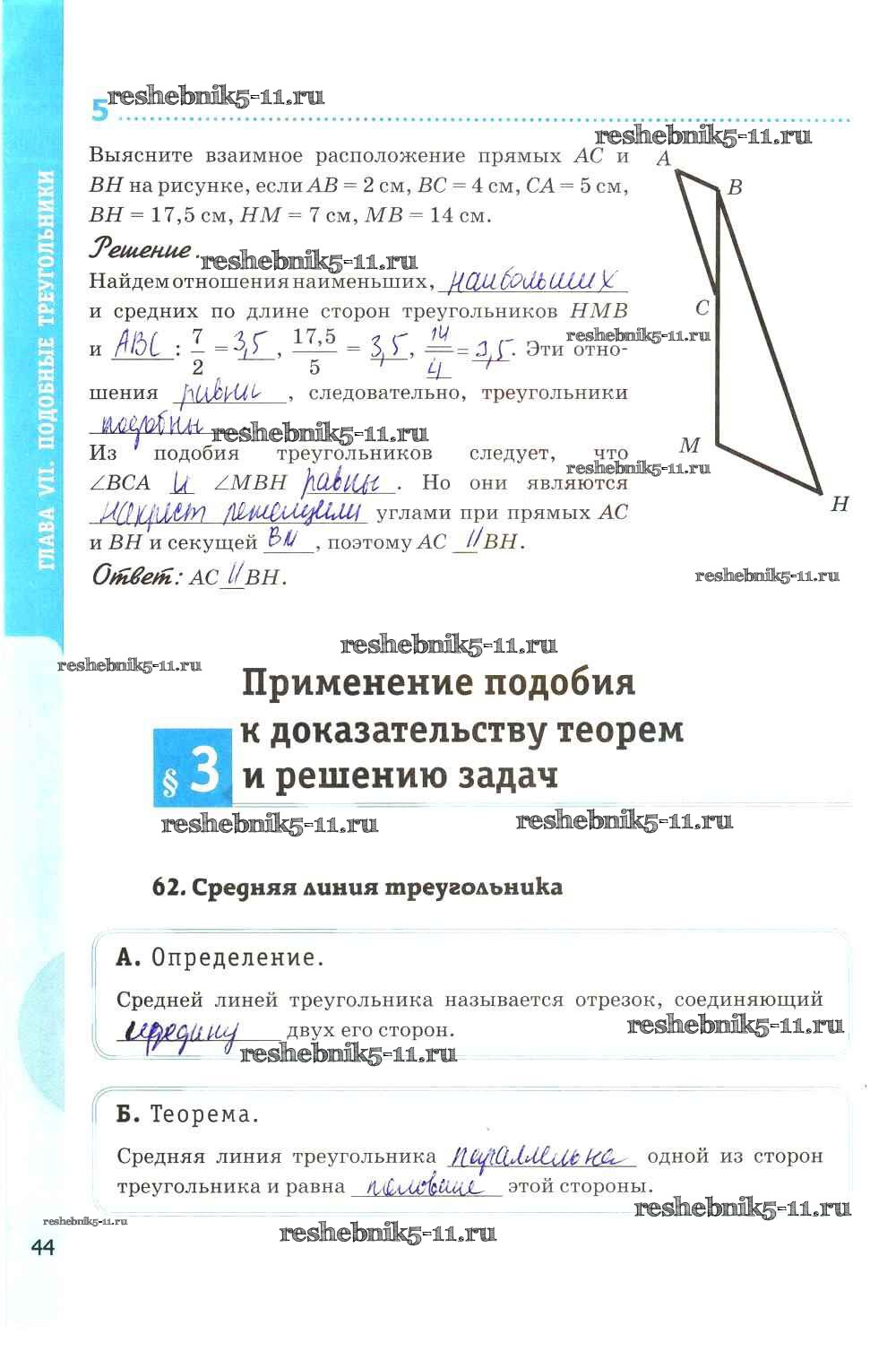 Готовая домашняя работа с ответами по Геометрии за 8 класс Глазков, Камаев Рабочая тетрадь УМК Экзамен 2017 ФГОС - Глава VII. Подобные треугольники стр. 44
