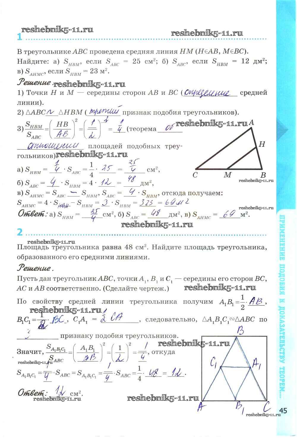 Готовая домашняя работа с ответами по Геометрии за 8 класс Глазков, Камаев Рабочая тетрадь УМК Экзамен 2017 ФГОС - Глава VII. Подобные треугольники стр. 45
