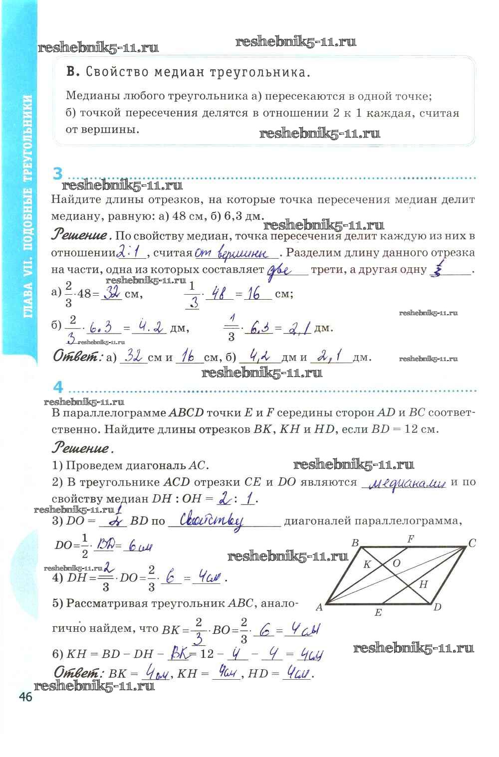 Готовая домашняя работа с ответами по Геометрии за 8 класс Глазков, Камаев Рабочая тетрадь УМК Экзамен 2017 ФГОС - Глава VII. Подобные треугольники стр. 46