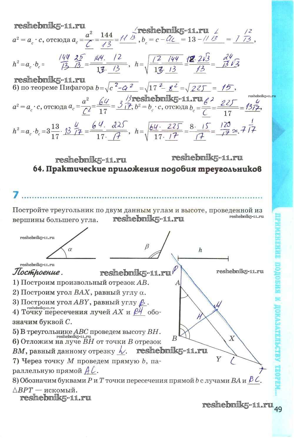 Готовая домашняя работа с ответами по Геометрии за 8 класс Глазков, Камаев Рабочая тетрадь УМК Экзамен 2017 ФГОС - Глава VII. Подобные треугольники стр. 49