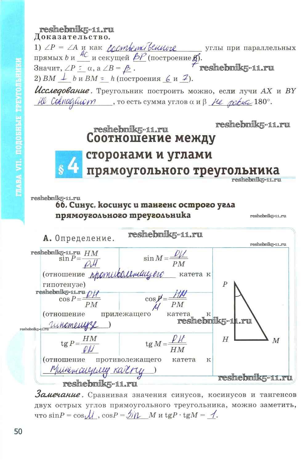 Готовая домашняя работа с ответами по Геометрии за 8 класс Глазков, Камаев Рабочая тетрадь УМК Экзамен 2017 ФГОС - Глава VII. Подобные треугольники стр. 50