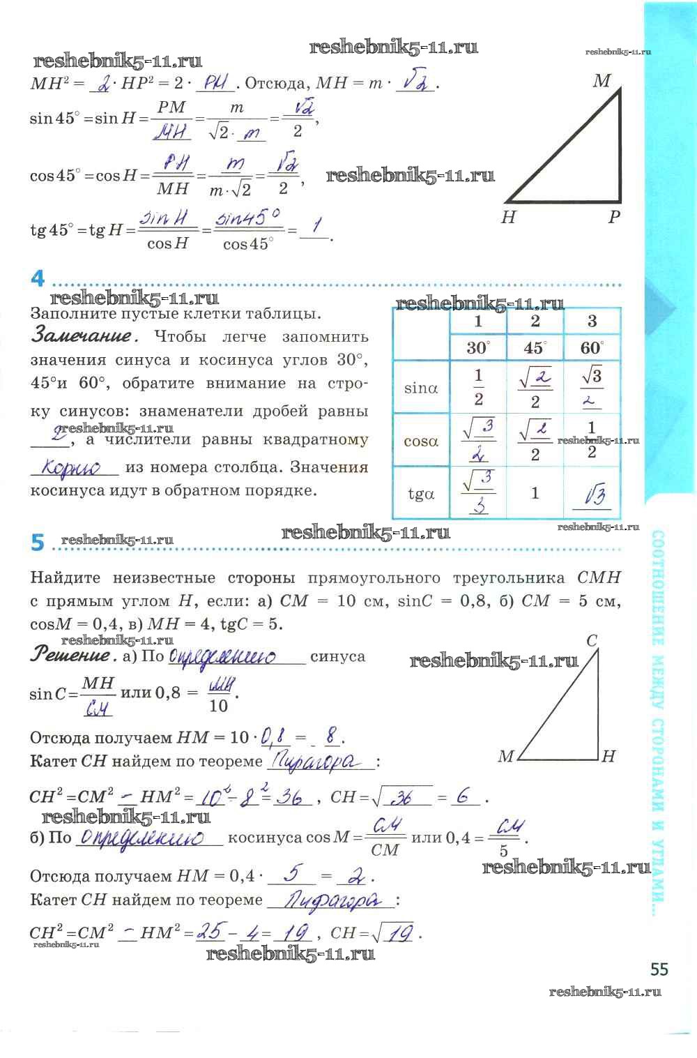 Геометрия за 8 класс Глазков Рабочая тетрадь УМК Экзамен глава VII стр. 55