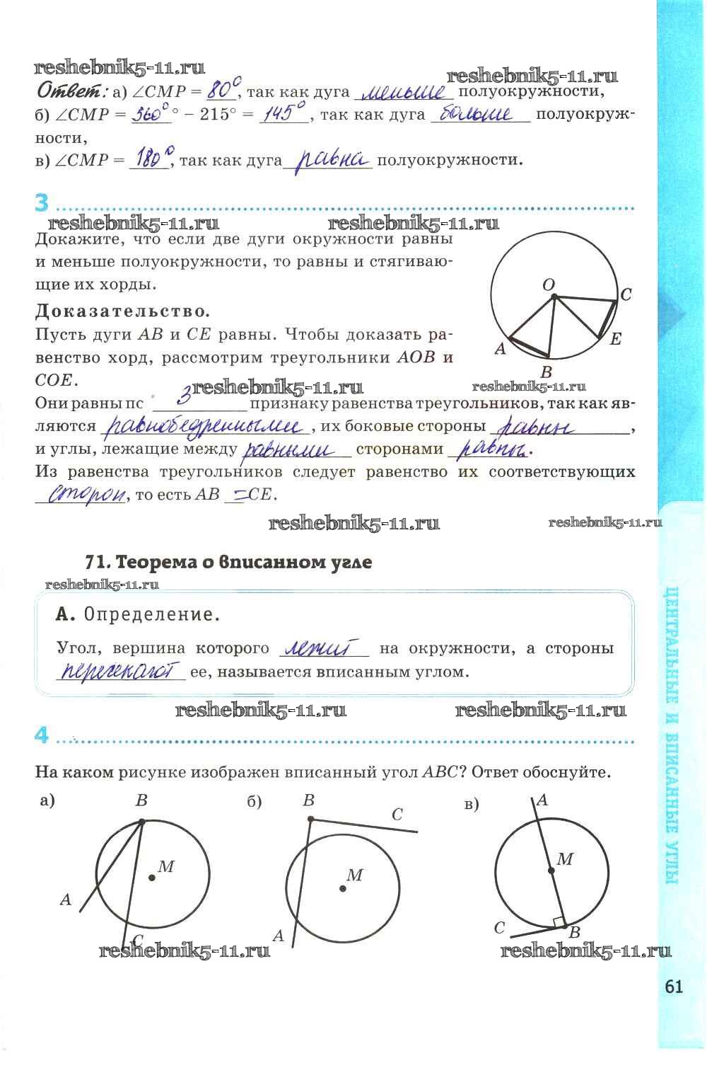 Готовая домашняя работа с ответами по Геометрии за 8 класс Глазков, Камаев Рабочая тетрадь УМК Экзамен 2017 ФГОС - Глава VIII. Окружность стр. 61