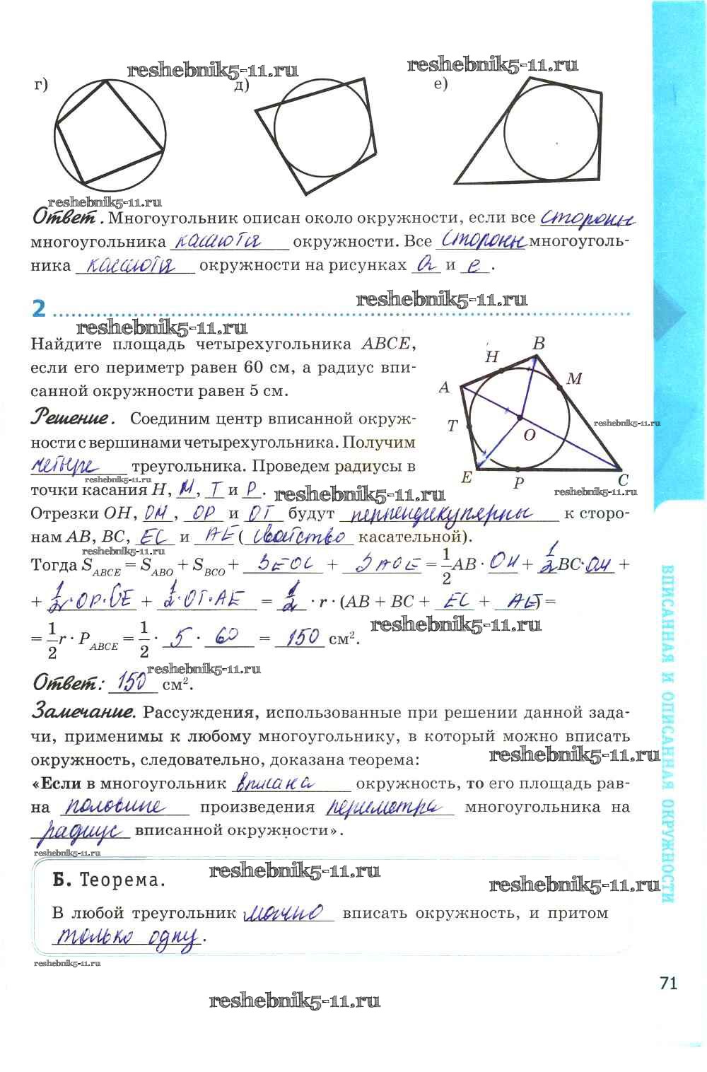 Готовая домашняя работа с ответами по Геометрии за 8 класс Глазков, Камаев Рабочая тетрадь УМК Экзамен 2017 ФГОС - Глава VIII. Окружность стр. 71