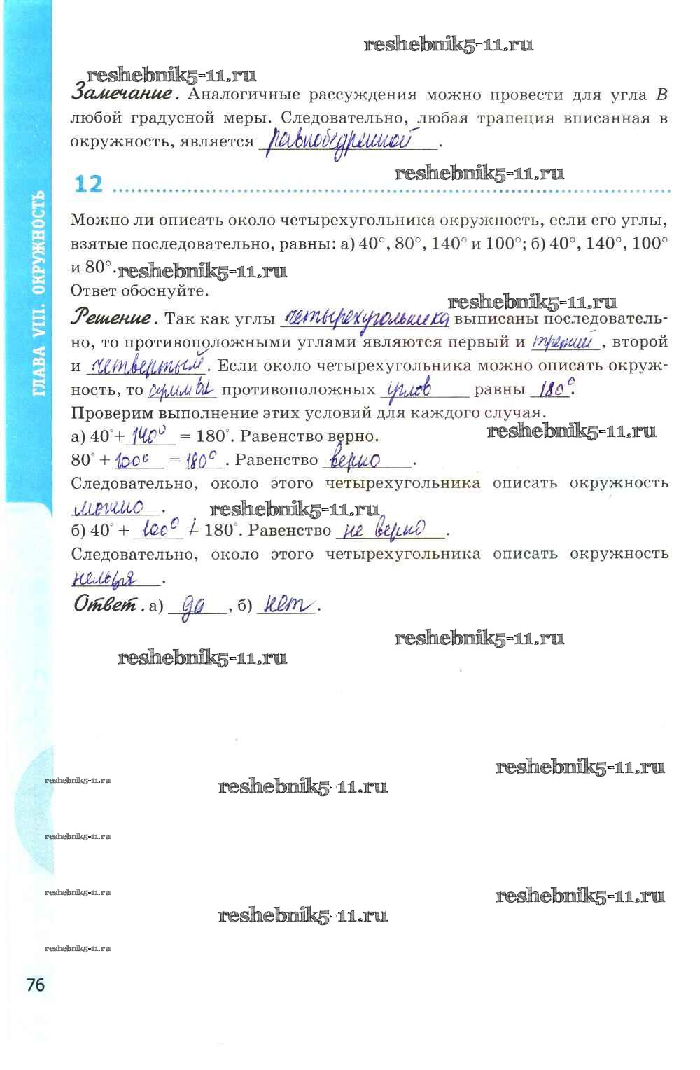 Готовая домашняя работа с ответами по Геометрии за 8 класс Глазков, Камаев Рабочая тетрадь УМК Экзамен 2017 ФГОС - Глава VIII. Окружность стр. 76