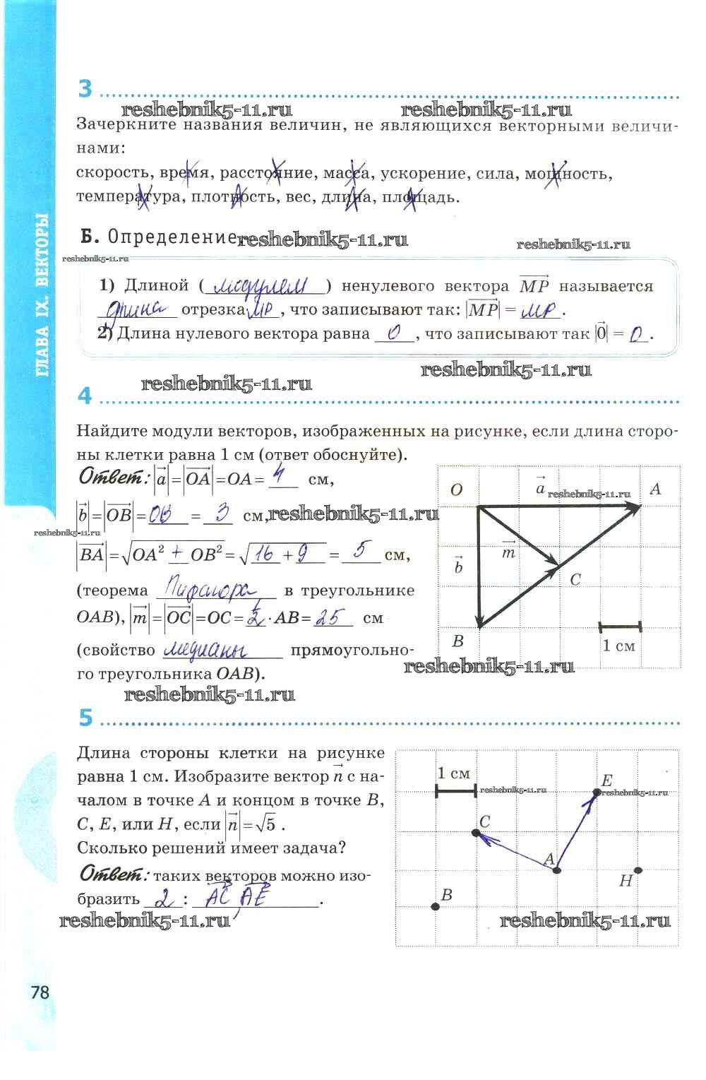 Готовая домашняя работа с ответами по Геометрии за 8 класс Глазков, Камаев Рабочая тетрадь УМК Экзамен 2017 ФГОС - Глава IX. Векторы стр. 78