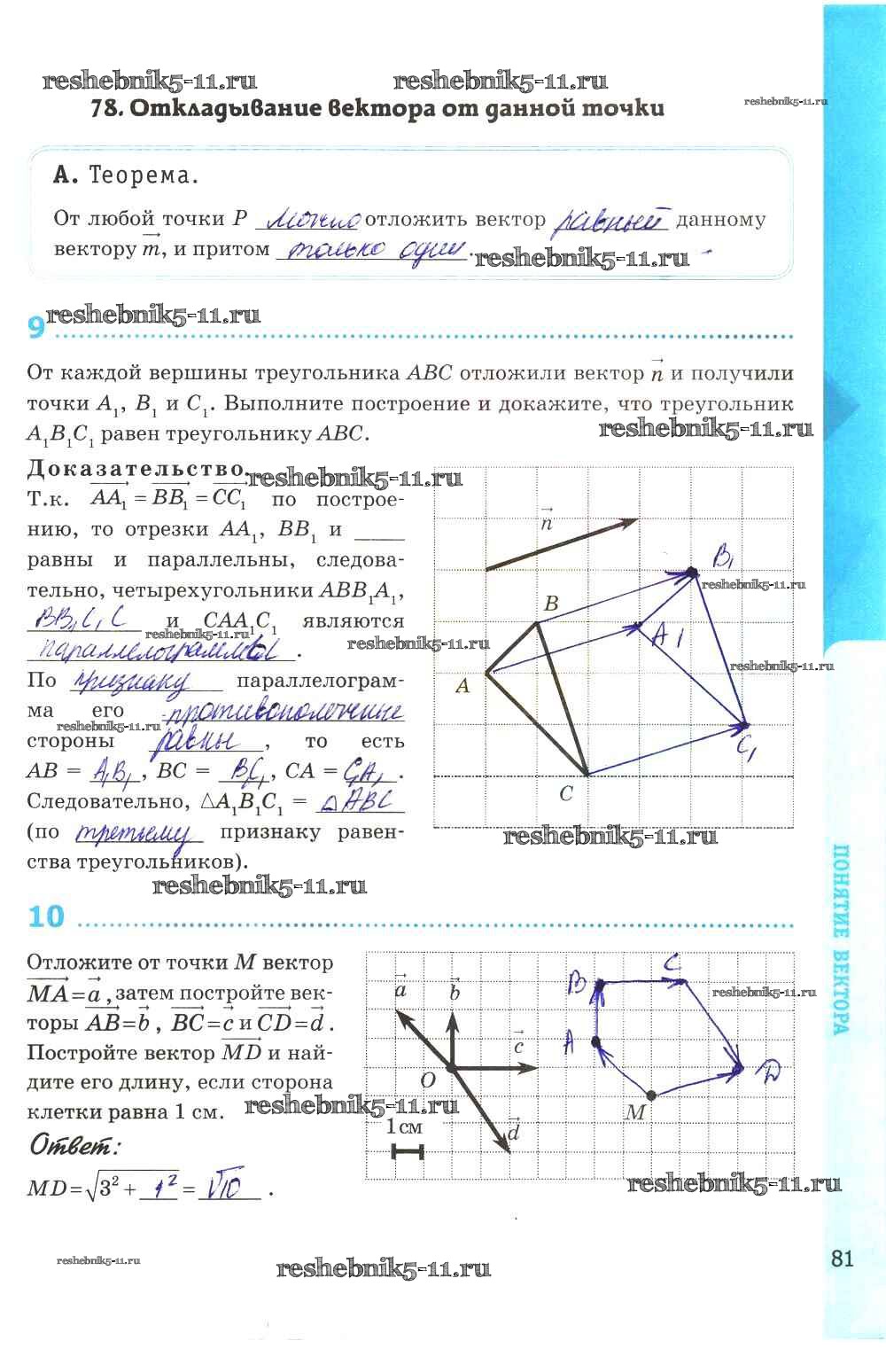 Готовая домашняя работа с ответами по Геометрии за 8 класс Глазков, Камаев Рабочая тетрадь УМК Экзамен 2017 ФГОС - Глава IX. Векторы стр. 81
