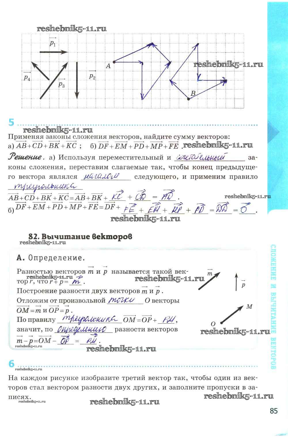 Готовая домашняя работа с ответами по Геометрии за 8 класс Глазков, Камаев Рабочая тетрадь УМК Экзамен 2017 ФГОС - Глава IX. Векторы стр. 85
