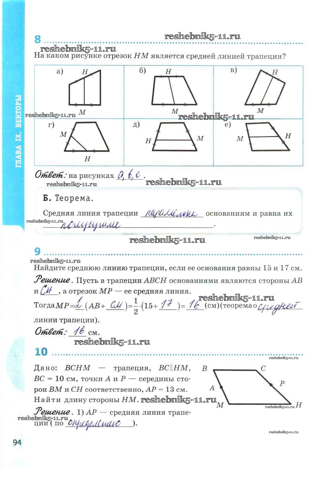 Геометрия за 8 класс Глазков Рабочая тетрадь УМК Экзамен глава IX стр. 94