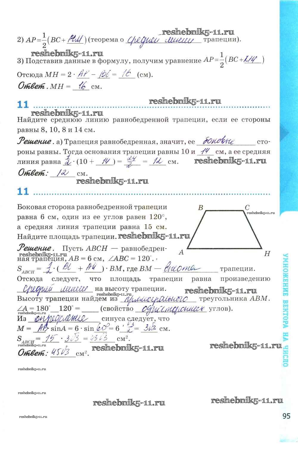 Геометрия за 8 класс Глазков Рабочая тетрадь УМК Экзамен глава IX стр. 95