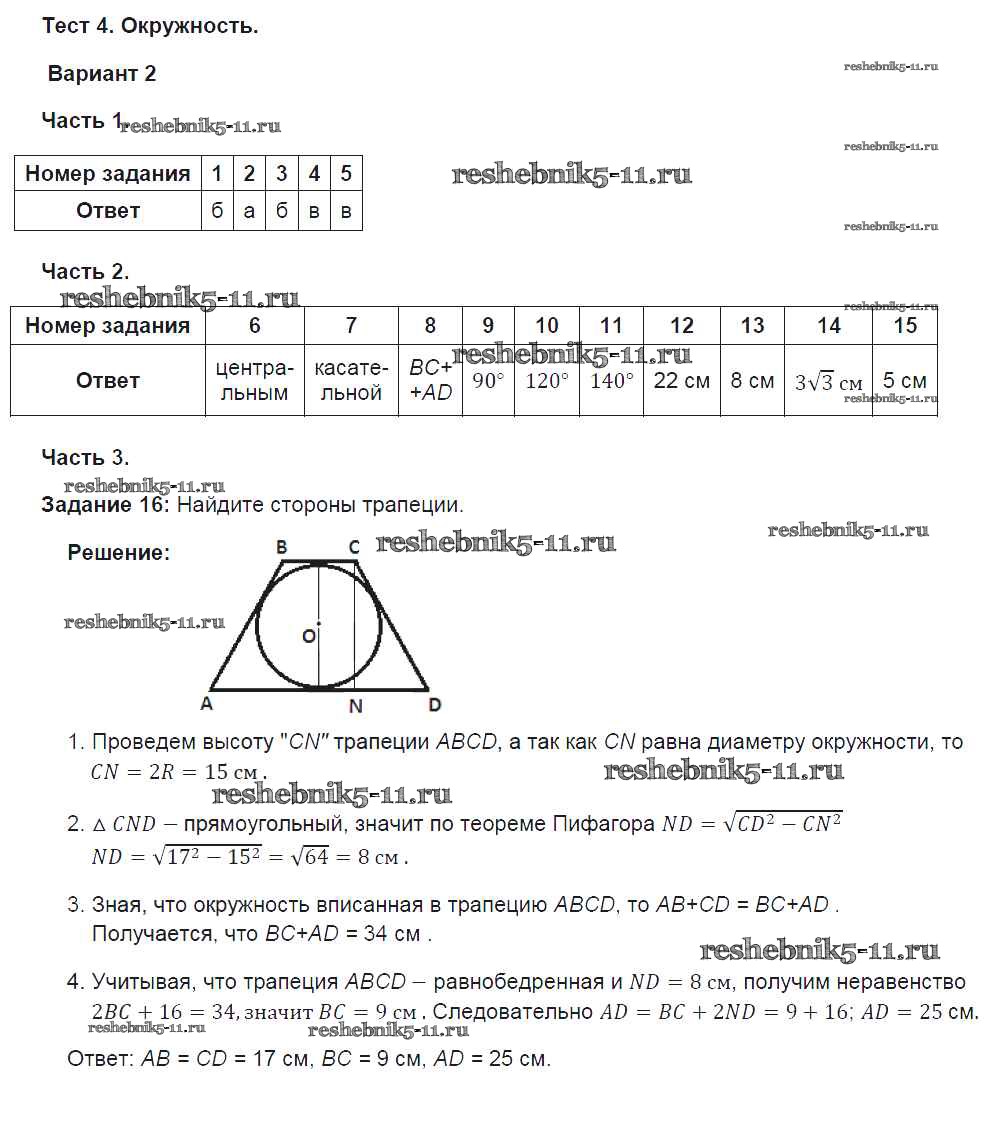 Решебник / глава 4. окружность / вариант №2