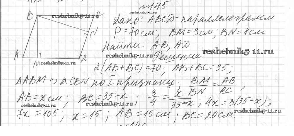 Готовая домашняя работа с ответами по Геометрии за 8 класс Мерзляк, Полонский, Рабинович, Якир Дидактические материалы Алгоритм успеха Вентана-граф 2017 ФГОС - Вариант 1 145