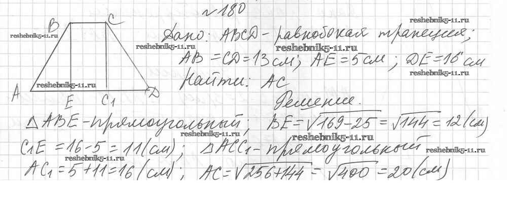 Готовая домашняя работа с ответами по Геометрии за 8 класс Мерзляк, Полонский, Рабинович, Якир Дидактические материалы Алгоритм успеха Вентана-граф 2017 ФГОС - Вариант 1 180