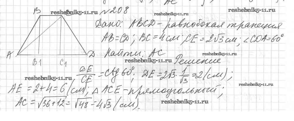Готовая домашняя работа с ответами по Геометрии за 8 класс Мерзляк, Полонский, Рабинович, Якир Дидактические материалы Алгоритм успеха Вентана-граф 2017 ФГОС - Вариант 1 208