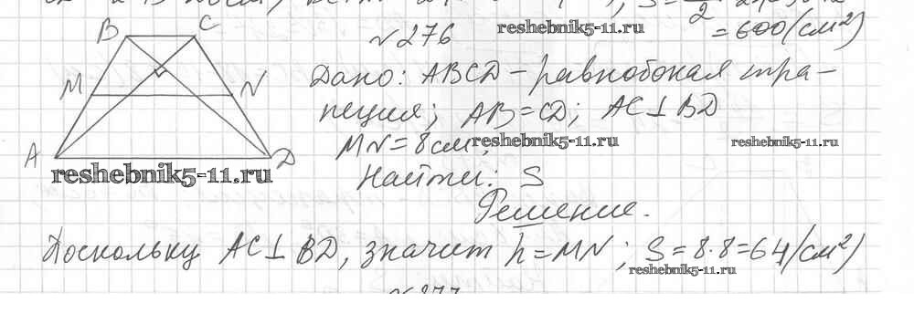Готовая домашняя работа с ответами по Геометрии за 8 класс Мерзляк, Полонский, Рабинович, Якир Дидактические материалы Алгоритм успеха Вентана-граф 2017 ФГОС - Вариант 1 276